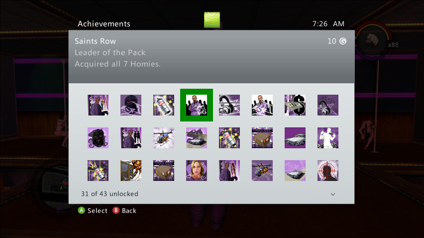 There are 43 Achievements in Saints Row, with a total of 1,000 Gamerscore points.