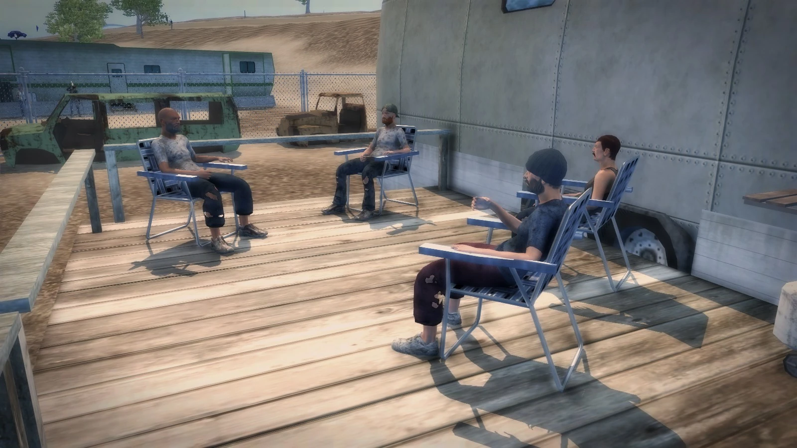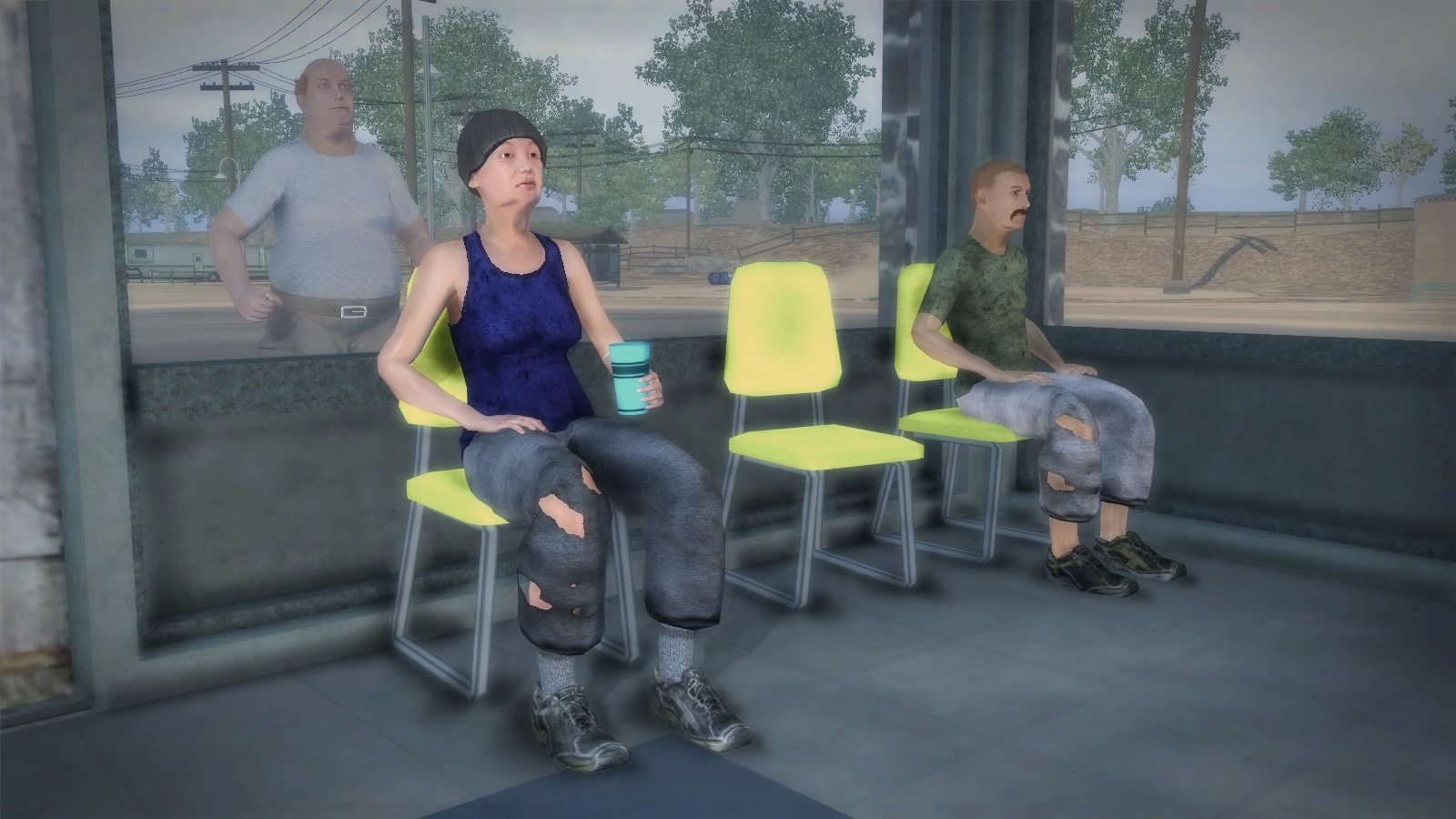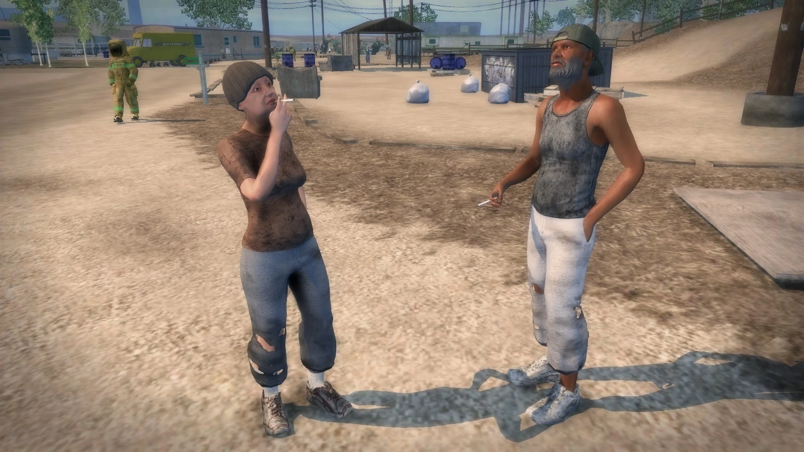 Bums sitting in Elysian Fields (Trailer Park District) in Saints Row 2