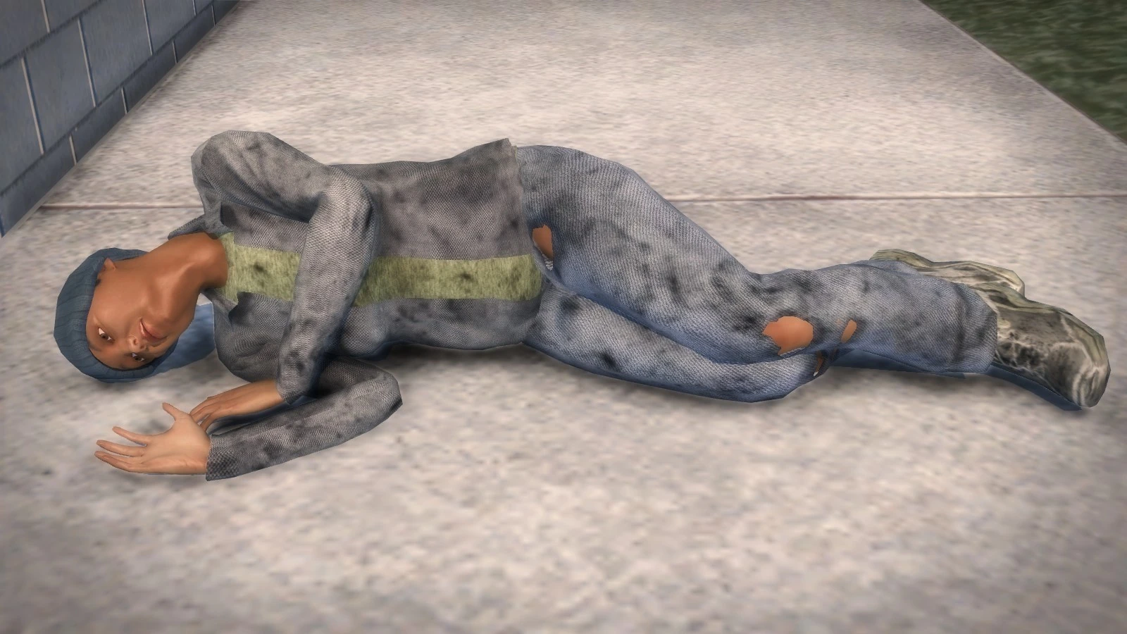 A Bum asleep in New Hennequet (Suburbs Expansion District) in Saints Row 2