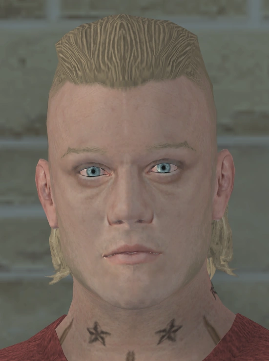Matt has a very strong '80s punk appearance. His hairstyle consists of a blonde mullet, and, similar to his best friend Maero, his body is full of tattoos. His eyebrows, nose, chin and ears all have piercings. He dons a crimson vest; the color of the Brotherhood.