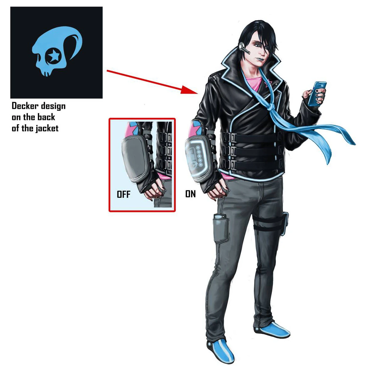Matt Miller has a major obsession for technology, which he incorporates it into his clothing, such as a wrist band on his right arm which features a key pad and screen with a neon blue trim, and various high-tech features on his dark, neon blue, light-up jacket. He is a described Internet god but is socially awkward when out in the open.[7] Matt and his gang are computer geniuses, but in stark contrast to the Luchadores or the Morningstar, they are more subtle in their commitment of cyber crime.[7] In addition, all of them dress in very much the same way, sporting dark clothing with neon-blue highlights.