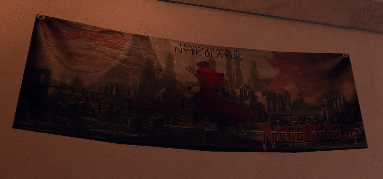 - Nyte Blayde's real name, Franklyn Nyte, is displayed on a poster in the STAG PR Center, which is accessible at any time and is featured in the mission, "Nyte Blayde's Return".[5]