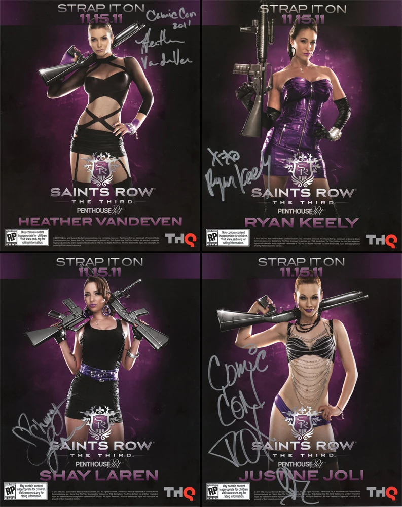 Saints Row: The Third promo flyers featuring 3 of the Penthouse Pack members