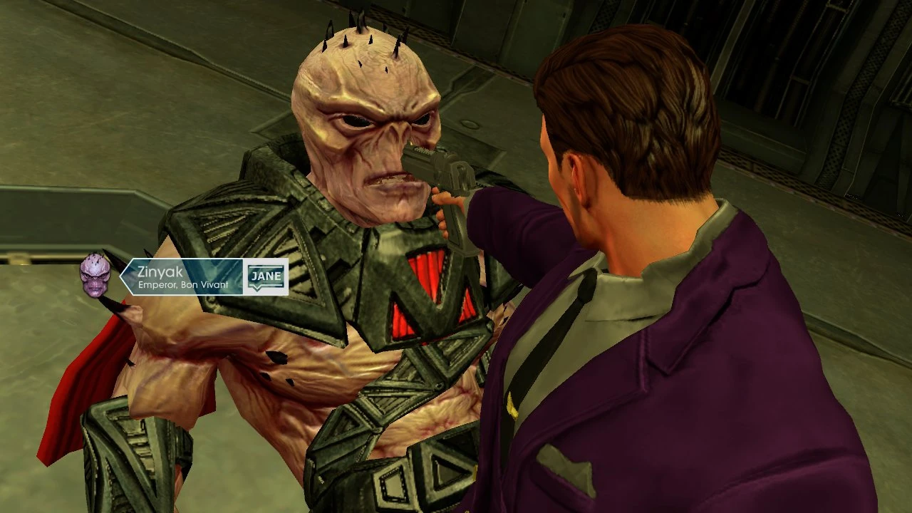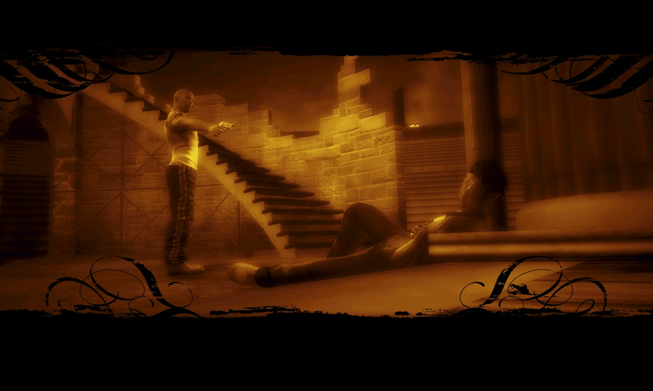 The Playa gets their revenge on Julius. Note this screenshot is taken from the loading screen for the mission Revelation, depicting the default Playa of Saints Row 2.