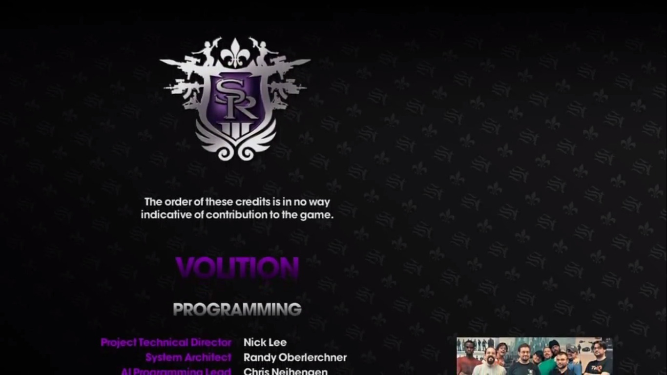 After completing one of the final missions in Saints Row: The Third, either "STAG Film" or "Gangstas in Space", the credits begin to roll