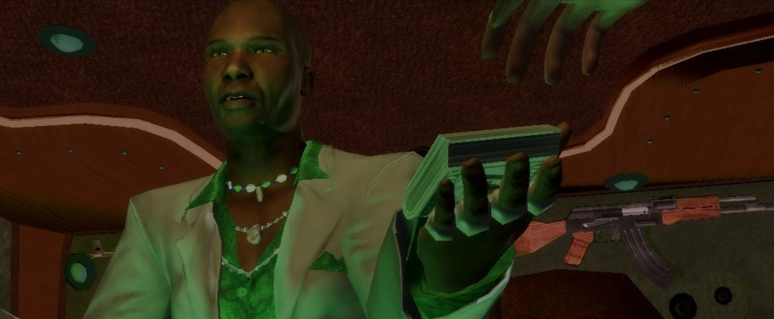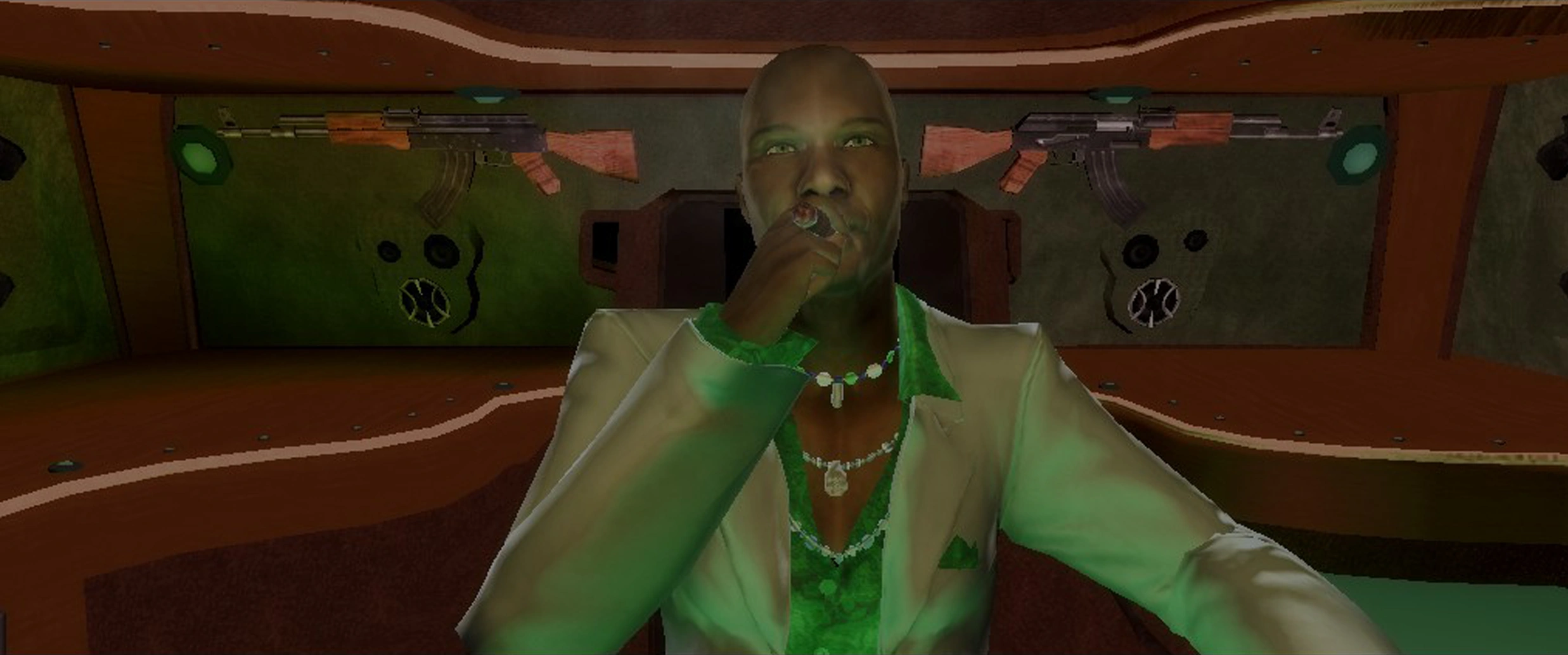 After the Saints destroy most of his drug labs in Shivington[12], further ruining his profits, The General and Mr. Sunshine decide to confront and execute Playa by snatching him off the streets. Once inside The General's limo, Playa succumbs to the effects of Loa Dust present in the air, but still manages to kill two of The General's guards, let off two shots at Mr. Sunshine, and escape using the corpse of one of the guards to break his fall as he tumbles out onto the streets at high speed. After this, The General orders a massive assault on the Saints Hideout, but Playa, Pierce, and Shaundi manage to fight off all the encroaching Samedi despite Playa being insanely high at the time.[13]