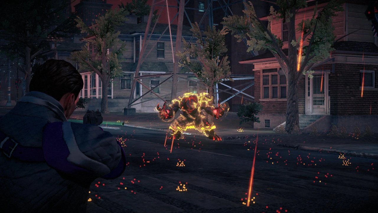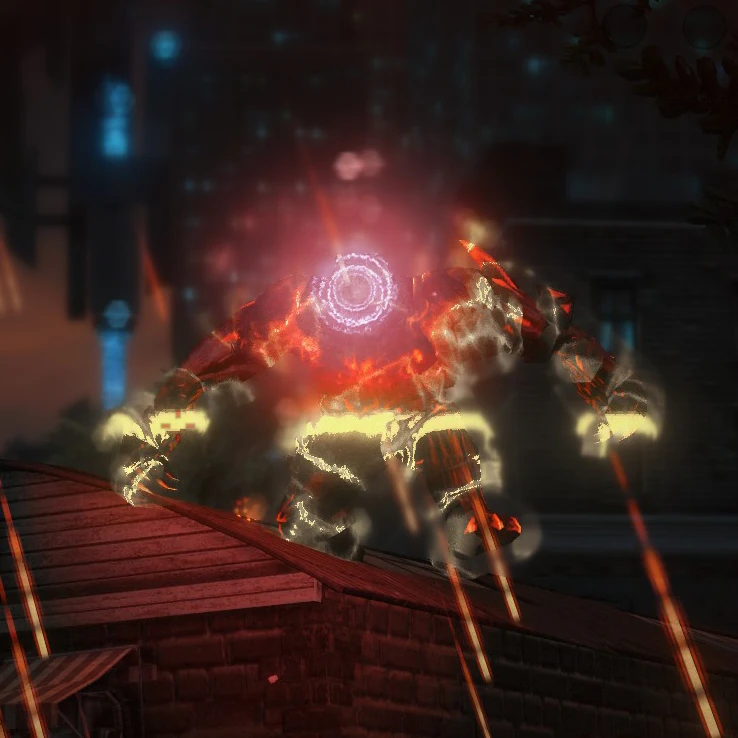 Wardens have 6 methods of attack. The first method is a Blast fired from their mouths. There is a noticeable charge time before the blast is unleashed, allowing Playa time to dodge the Blast. The Blast attack is powerful enough to instantly destroy many vehicles. Their second method of attack is to use Telekinesis to hurl a nearby prop at Playa. There is a delay between when the Warden picks up the prop and when he throws it, and the red trail leading to the prop is clearly visible. One thing to note is that Wardens can also catch objects launched by the player, and then toss them back. Their third method of attack is the Stomp power. They leap into the air before performing this attack, giving Playa time to get off the ground before the shockwave is unleashed. Sometimes, Wardens may perform two stomps in a row. Their fourth method of attack is a simple wrist-mounted laser that they use to attack Playa. The laser deals a small amount of damage and is quite inaccurate, making it the least dangerous attack used by the Wardens. Their fifth method is a swipe that they use at close range. The swipe is extremely powerful and knocks the player back quite a distance, making it a foolish endeavour to challenge the Wardens at close range. They can also charge Playa before slamming the ground in front of them, although this attack can be dodged by moving away when the Warden charges Playa. Their sixth and final method of attack is a move similar to the Death From Above ability used by Playa. They seem to only use it if Playa is in a vehicle, destroying it instantly, or if Playa is a large distance away from the Warden.